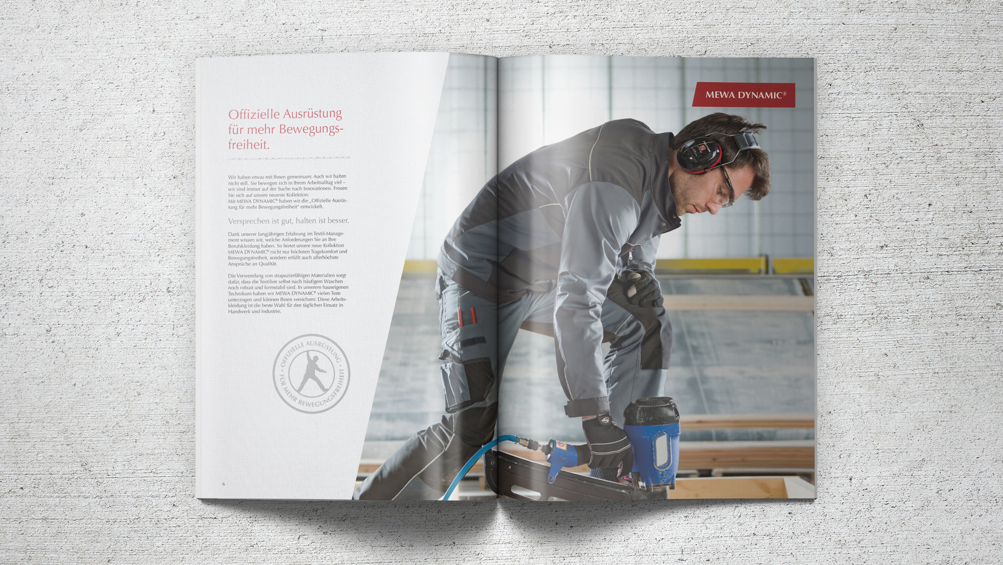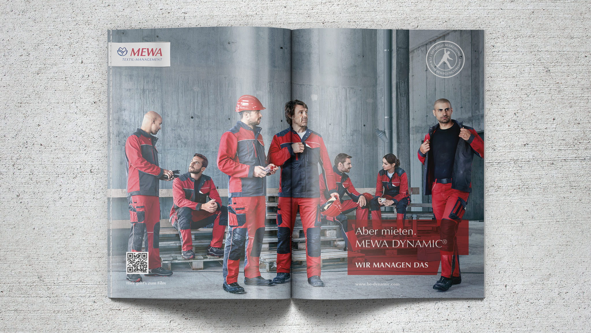 MEWA ist einer der großen europäischen Player im Bereich von Dienstleistungen für Betriebstextilien. Neben der Vermietung von Industrie-Putztüchern bietet MEWA Bekleidungskollektionen für Industrie und Handwerk an. Mit DYNAMIC launcht MEWA eine exklusive Eigenentwicklung, die in punkto Ergonomie, Tragekomfort, Optik und Strapazierfähigkeit Maßstäbe setzt. Entwicklung und Design sind von Outdoor- und Sportbekleidung inspiriert, um auch in extremen Situationen hohen Tragekomfort zu gewährleisten. MEWA Dynamic soll der neue Standard unter den Berufskleidungskollektionen in der Dienstleistung für Betriebstextilien werden. Gesucht: eine Kommunikationsidee und Kampagnenplattform, die den Fokus klar auf die perfekte Ergonomie und den hohen Tragekomfort setzt und die Kollektion als neuen Standard im Segment positioniert.  I  Konzept, Art Direction, Shootings, Creative Direction